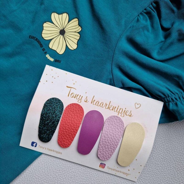 Deze handgemaakte klikklakspeldjes zijn te verkrijgen in een kleine- (3,7cm) en grote maat (5,5cm), maar ze zijn ook verkrijgbaar met een 'antislip' babyclip. Deze antislip knipjes zijn geschikt voor de aller eerste haartjes. Het heeft dezelfde vorm als de kleine maat van de klikklak speldjes (3,7cm), het enige verschil is dat er een antislip knipje achterop bevestigd is (het clipje gaat aan de zijkant open).