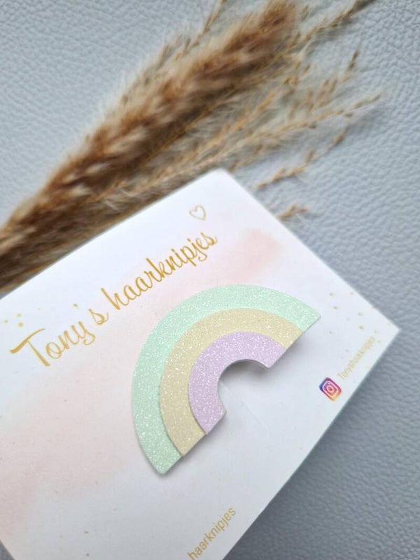 Regenboog in glitter pastelkleur groen/geel/ lila