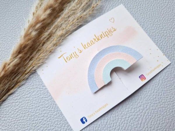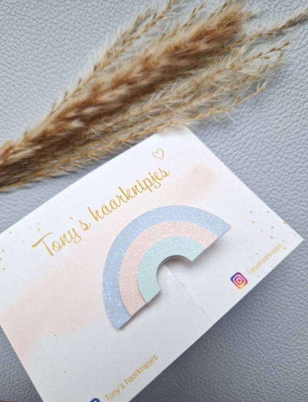 Regenboog in glitter pastelkleur blauw/zalm/mint