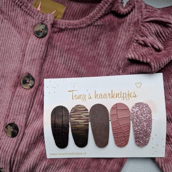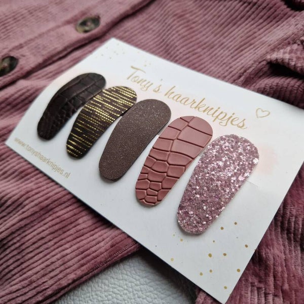 Deze handgemaakte klikklakspeldjes zijn te verkrijgen in een kleine- (3,7cm) en grote maat (5,5cm), maar ze zijn ook verkrijgbaar met een 'antislip' babyclip. Deze antislip knipjes zijn geschikt voor de aller eerste haartjes. Het heeft dezelfde vorm als de kleine maat van de klikklak speldjes (3,7cm), het enige verschil is dat er een antislip knipje achterop bevestigd is (het clipje gaat aan de zijkant open).