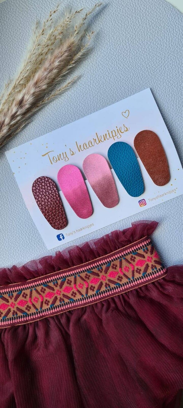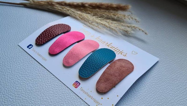 Deze handgemaakte klikklakspeldjes zijn te verkrijgen in een kleine- (3,7cm) en grote maat (5,5cm), maar ze zijn ook verkrijgbaar met een 'antislip' babyclip. Deze antislip knipjes zijn geschikt voor de aller eerste haartjes. Het heeft dezelfde vorm als de kleine maat van de klikklak speldjes (3,7cm), het enige verschil is dat er een antislip knipje achterop bevestigd is (het clipje gaat aan de zijkant open).