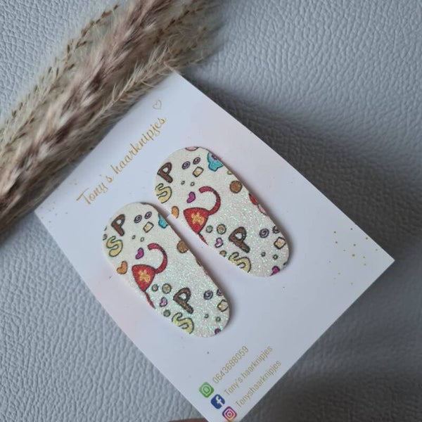 Deze handgemaakte klikklakspeldjes zijn te verkrijgen in een kleine- (3,7cm) en grote maat (5,5cm), maar ze zijn ook verkrijgbaar met een 'antislip' babyclip. Deze antislip knipjes zijn geschikt voor de aller eerste haartjes. Het heeft dezelfde vorm als de kleine maat van de klikklak speldjes (3,7cm), het enige verschil is dat er een antislip knipje achterop bevestigd is (het clipje gaat aan de zijkant open).