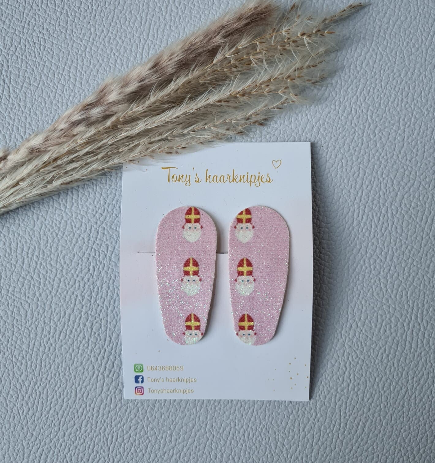 Handgemaakte klikklakspeldjes Sint roze/glitter