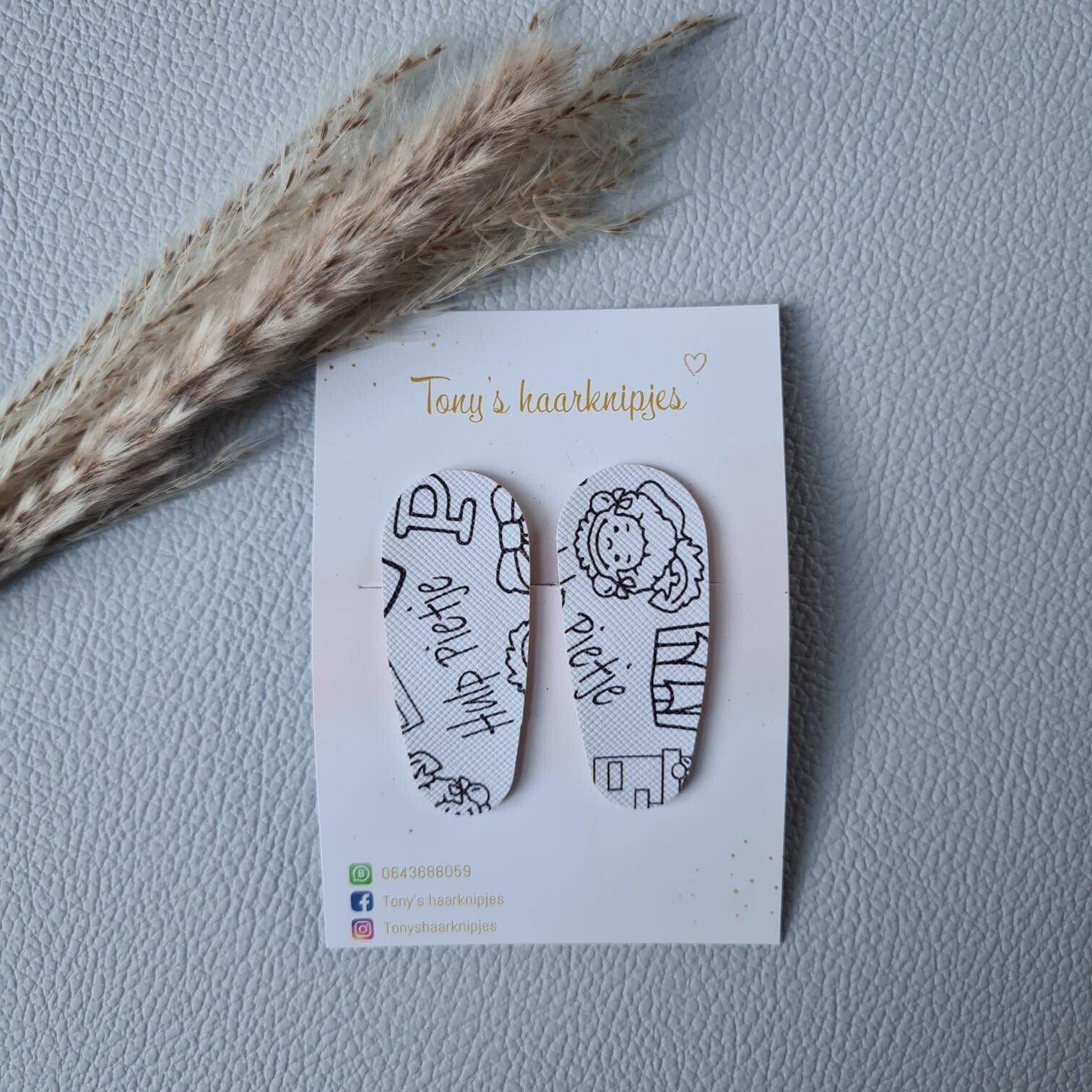 Deze handgemaakte klikklakspeldjes zijn te verkrijgen in een kleine- (3,7cm) en grote maat (5,5cm), maar ze zijn ook verkrijgbaar met een 'antislip' babyclip. Deze antislip knipjes zijn geschikt voor de aller eerste haartjes. Het heeft dezelfde vorm als de kleine maat van de klikklak speldjes (3,7cm), het enige verschil is dat er een antislip knipje achterop bevestigd is (het clipje gaat aan de zijkant open).