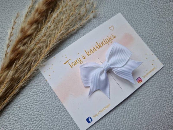 Deze strik is 5cm breed en 3cm hoog en is verkrijgbaar in 12 verschillende kleuren. Je bestelt de 3e strik op de laatste foto.